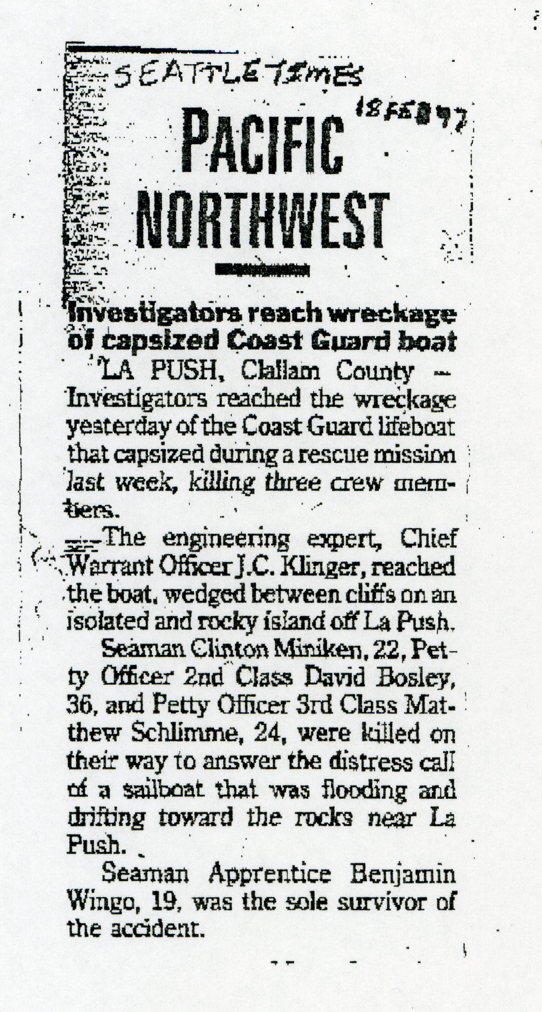 13 February 1997 Seattle Times: “Coast Guard, town grieve.” Sarah Zurflueh archive