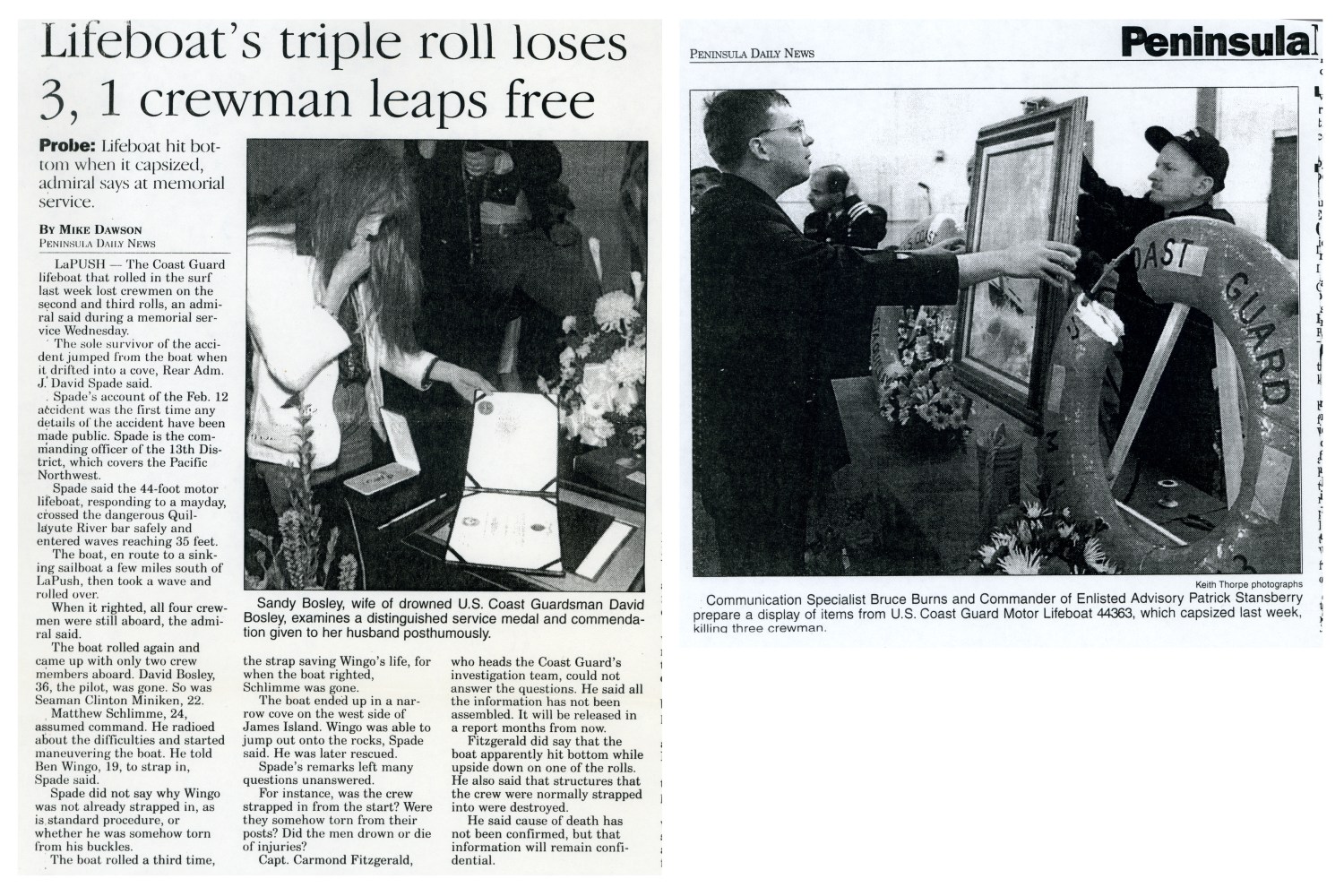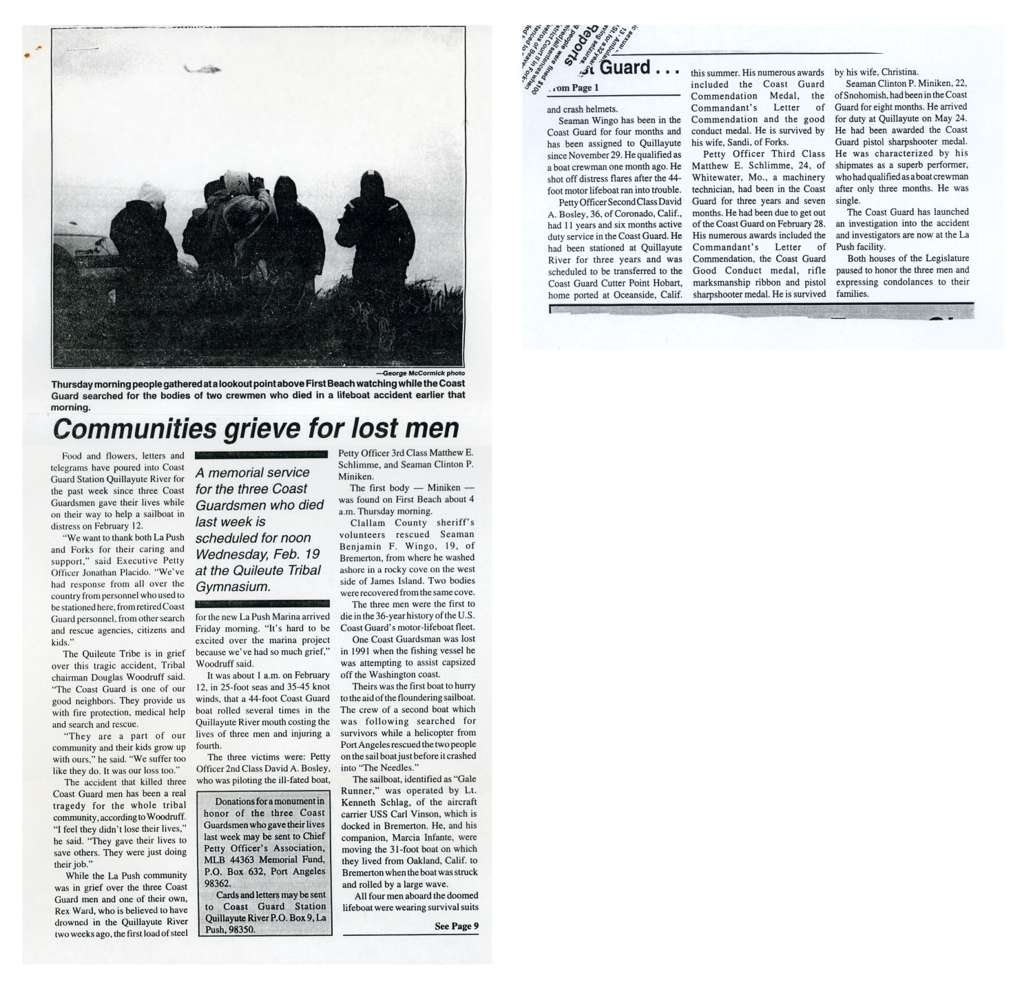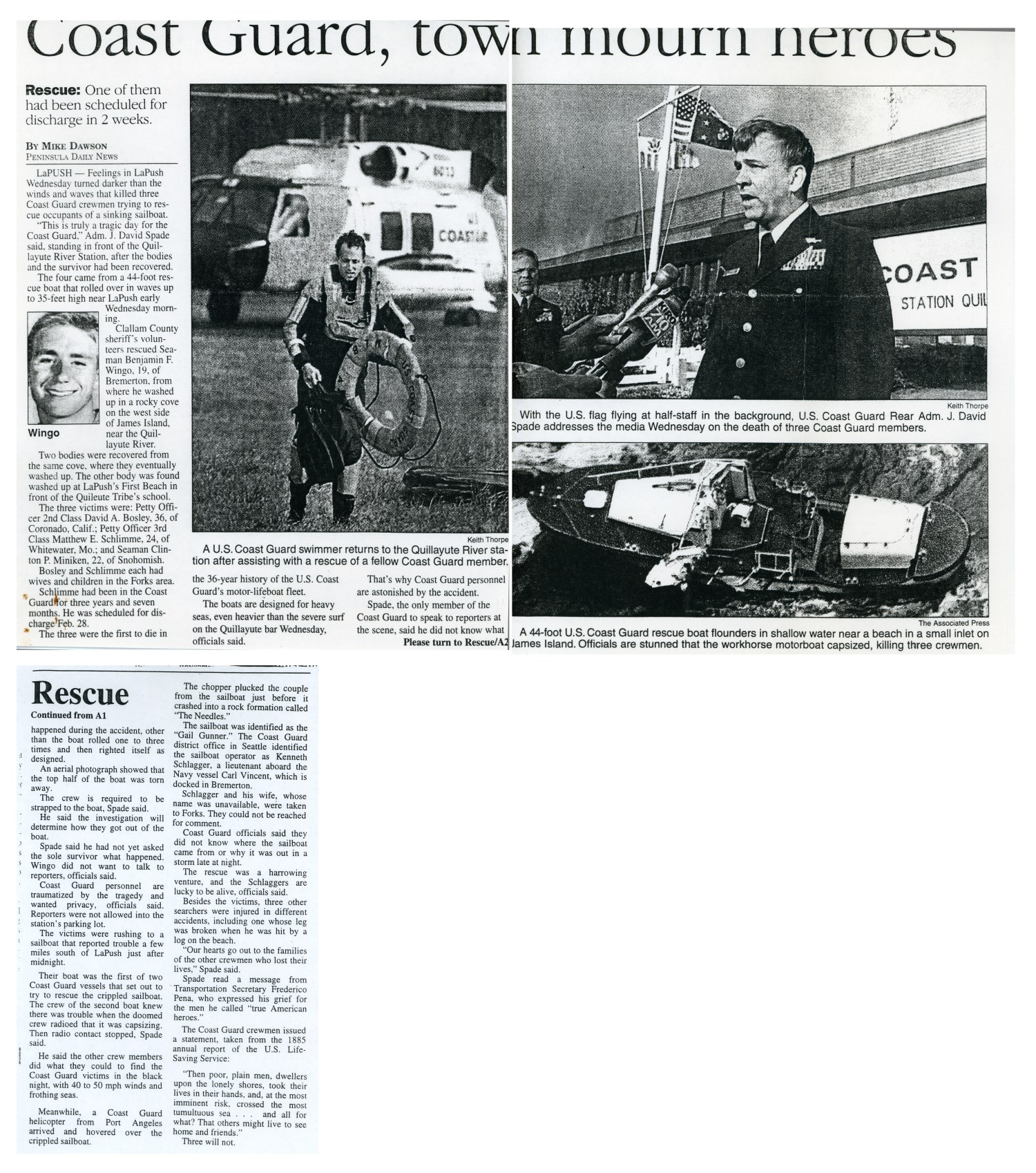 February 1997 Peninsula Daily News: “Coast Guard, town mourn heroes.” Sarah Zurflueh archive