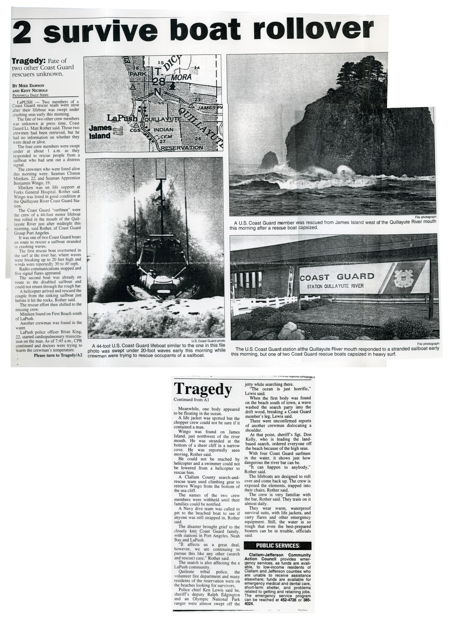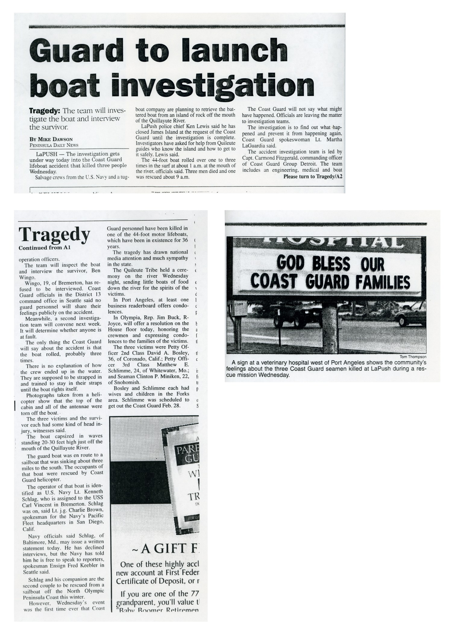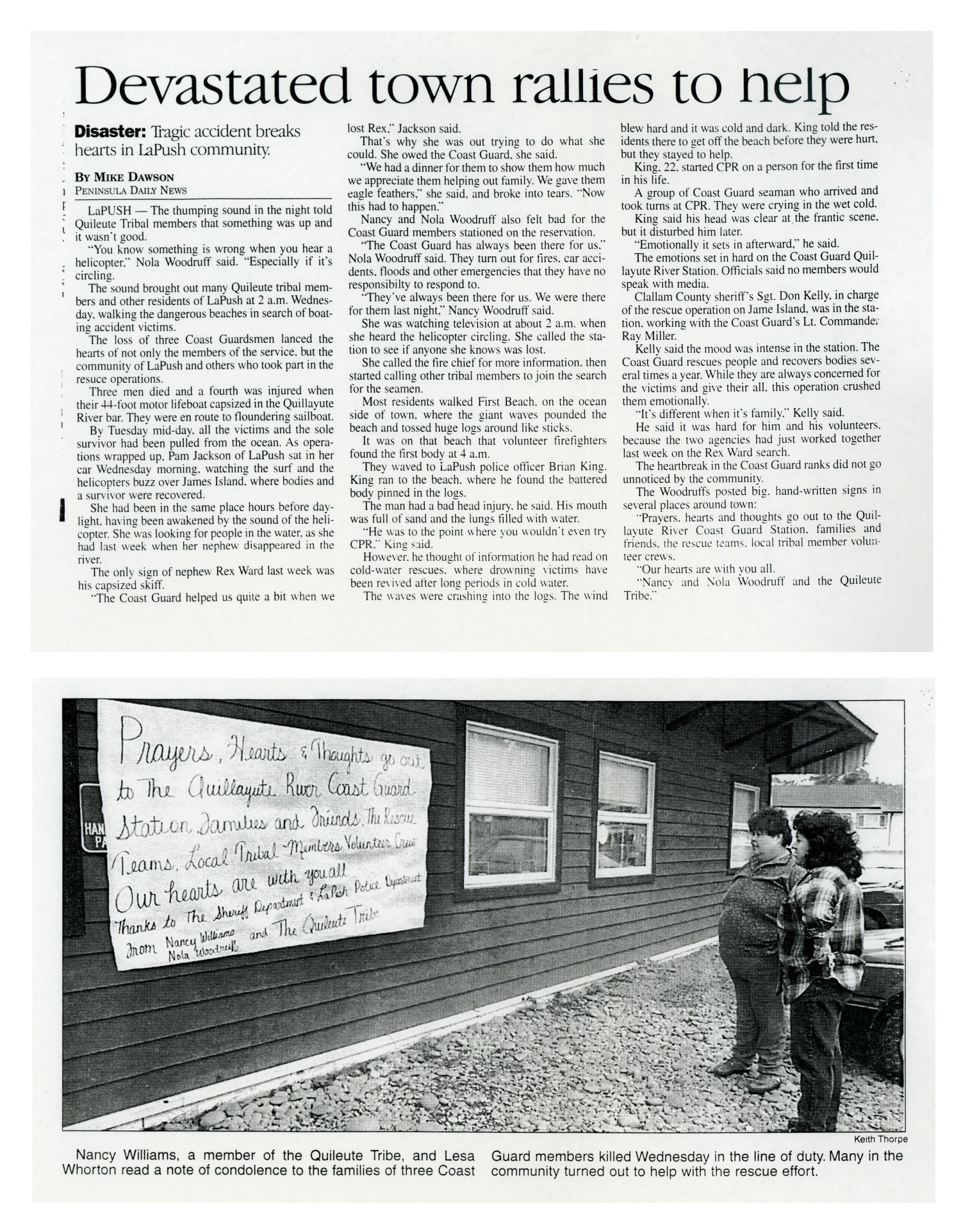 February 1997 Peninsula Daily News: “Coast Guard, town mourn heroes.” Sarah Zurflueh archive