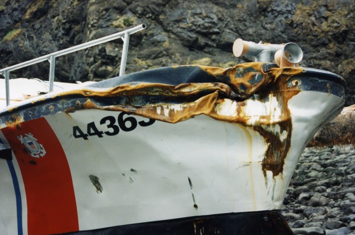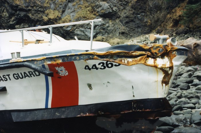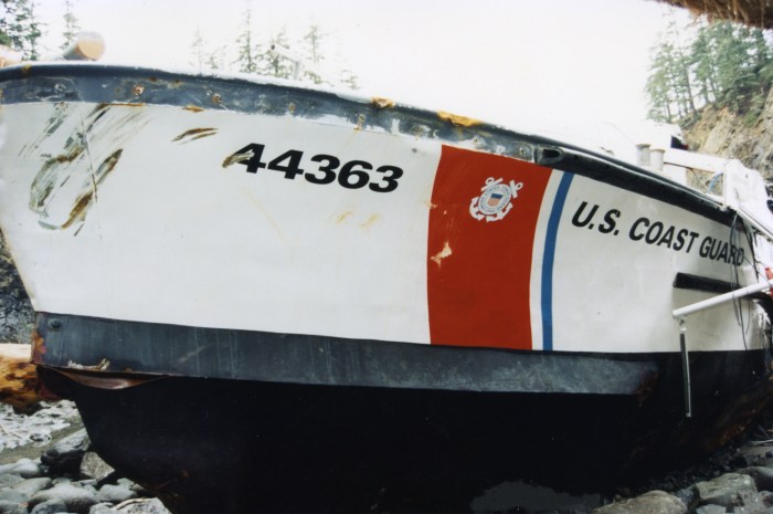 One example comes from the administrative report. District 13’s RADM J. David Spade refuted the administrative investigation’s opinion that CG 44363’s navigation lights were not energized, citing SA Wingo’s comments that he used the “stern light” to track his progress in the cove while adrift after the third rollover. Yet earlier, the administrative investigation found that the mast was gone after the second rollover. Though configurations have changed over the years, the stern navigation light was located on the mast in 1997. (1)(2)(3)(4)(5)
